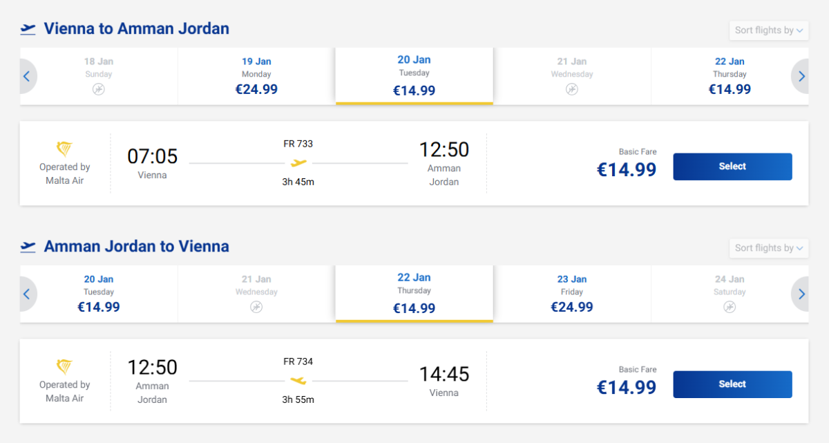 Ryanair ponúka spiatočné letenky z Viedne do Ammánu v januári za skvelé ceny.