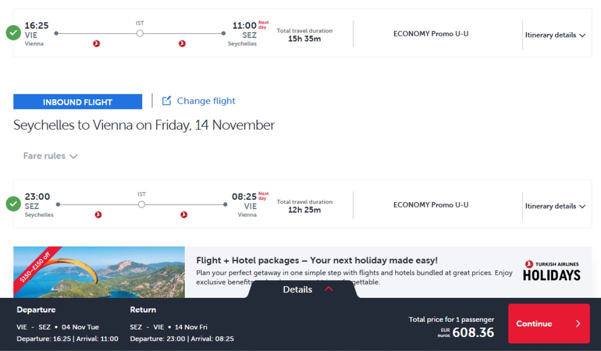 Na Seychely s Turkish Airlines z Viedne od novembra do marca