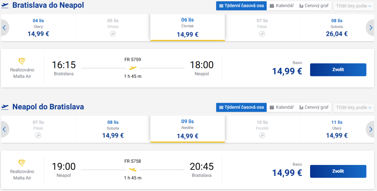Najmä Ryanair útočí veľmi atraktívnymi cenami na mnohých svojich linkách. Pre nás je dnes najzaujímavejšia ponuka spiatočných letov medzi Bratislavou a talianskym Neapolom, kde si môžete kúpiť letenky na celý november za 30 eur.
