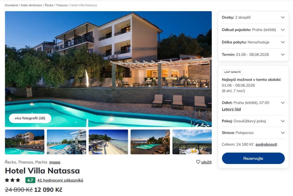Najlepšie ponuky sú k dispozícii od 1. do 8. júna. Zaujímavou možnosťou je veľmi dobre hodnotený hotel Villa Natassa*** s polpenziou.