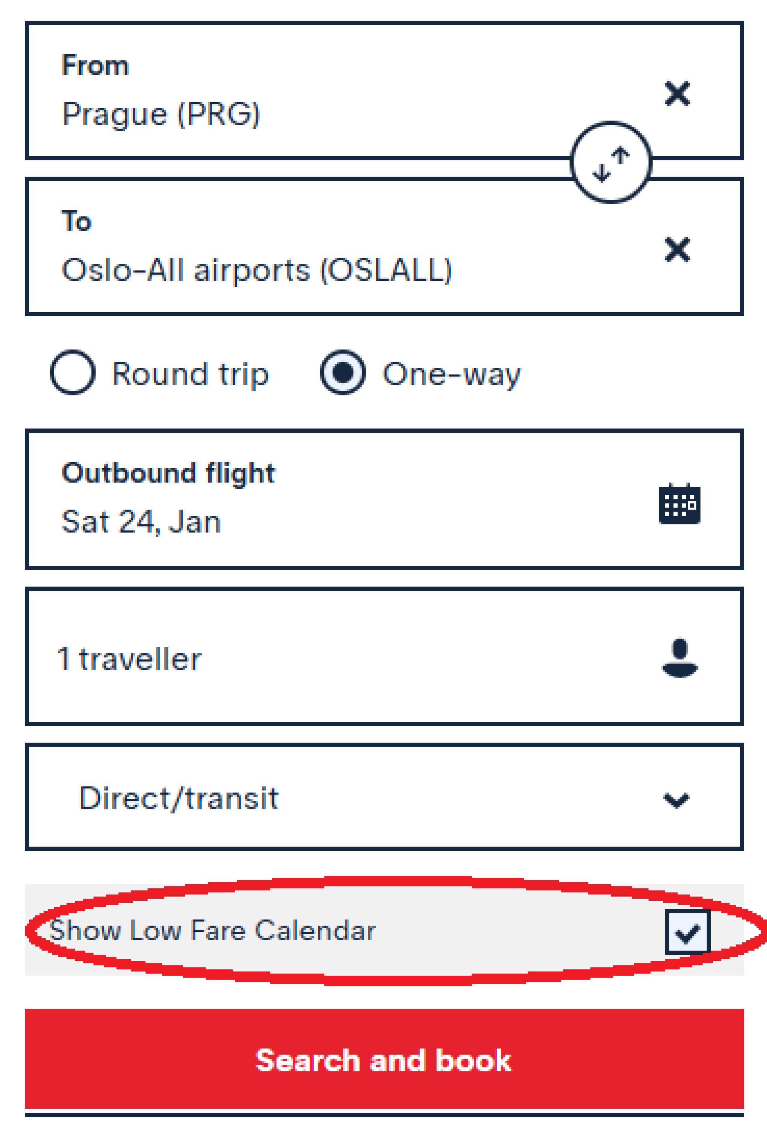 Pri vyhľadávaní letenky teda musíte najprv zaškrtnúť políčko "Zobraziť kalendár lacných leteniek".