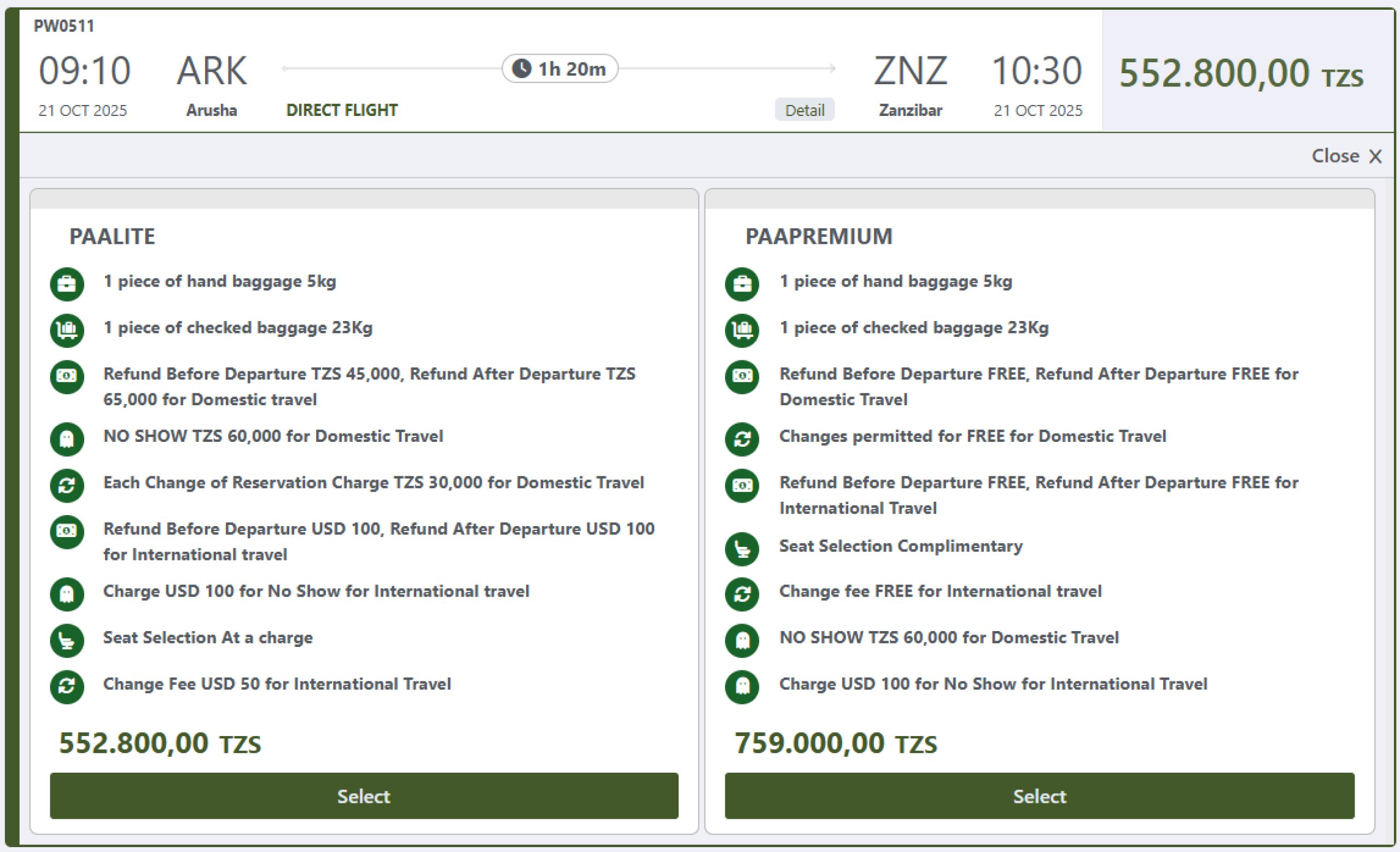 Keďže Precision Air má na mnohých trasách v Tanzánii konkurenciu v podobe iných leteckých spoločností, oplatí sa porovnať ceny prostredníctvom porovnávačov letov.