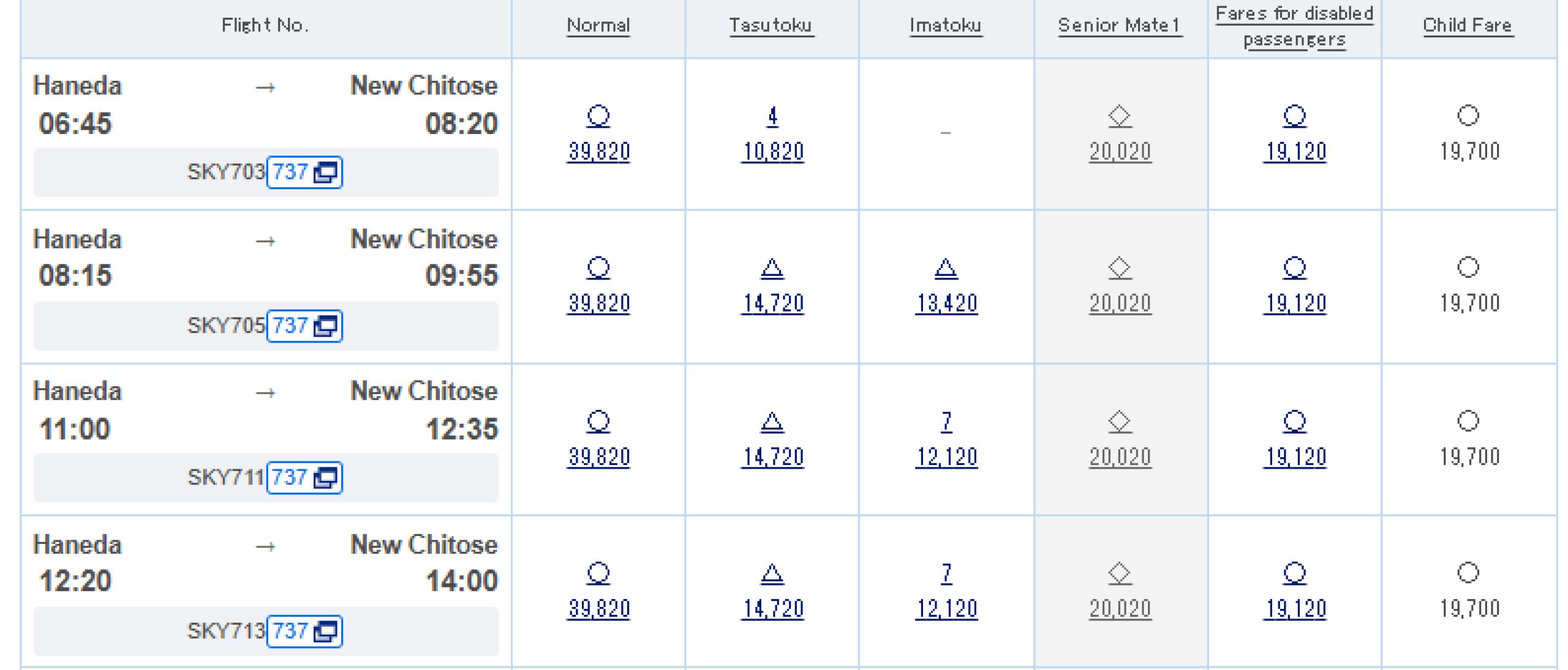 Letenky sa zvyčajne predávajú na oficiálnej webovej stránke skymark.co.jp.