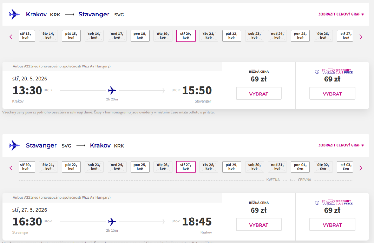 Nízkonákladová letecká spoločnosť Wizz Air ponúka lacné spiatočné lety z Krakova do dvoch ikonických miest v nórskych fjordoch.