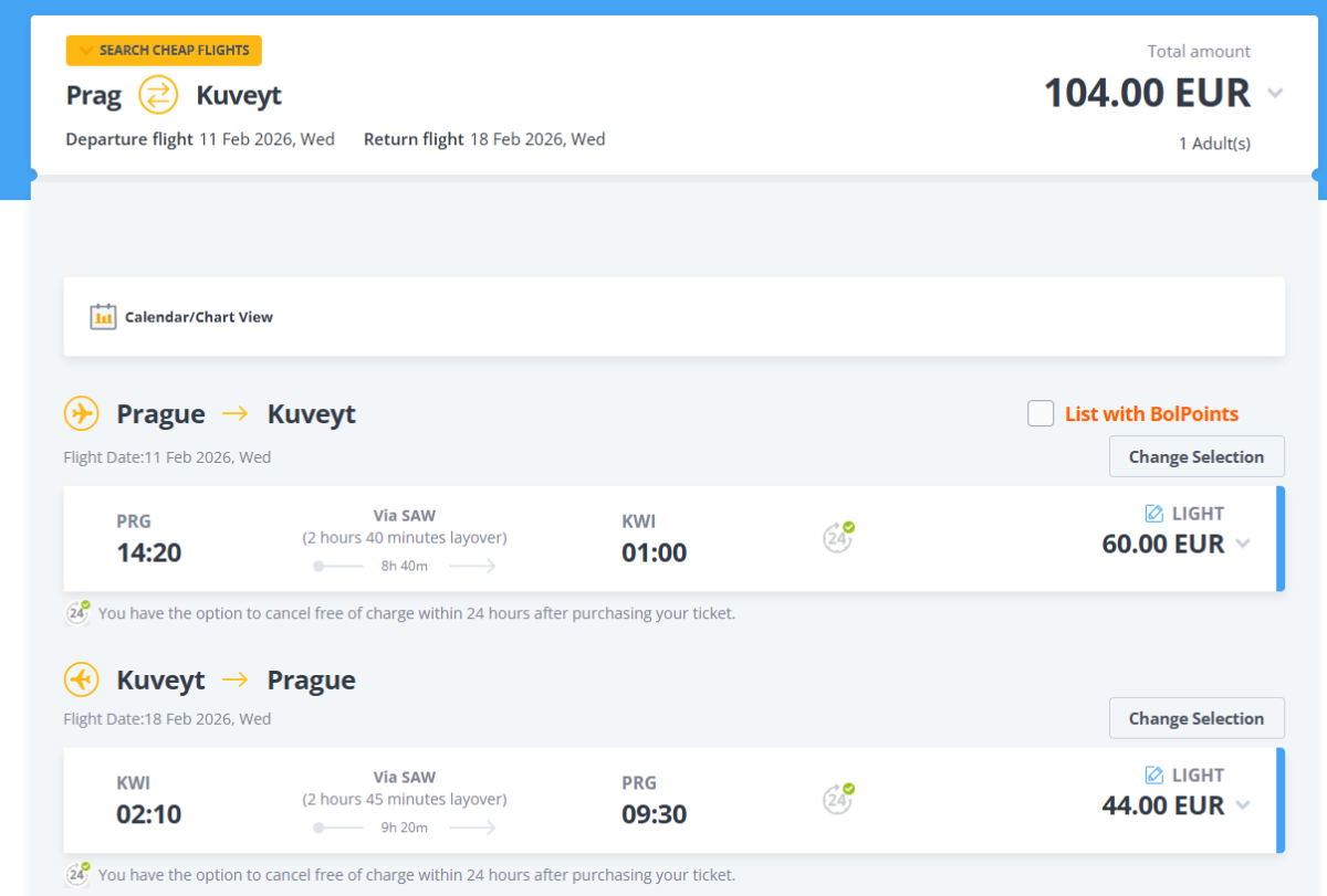 Cestou prestúpite na letisku Sabiha Gökçen v Istanbule.V základnej cene letenky Light je zahrnutá len malá príručná batožina do 3 kg.