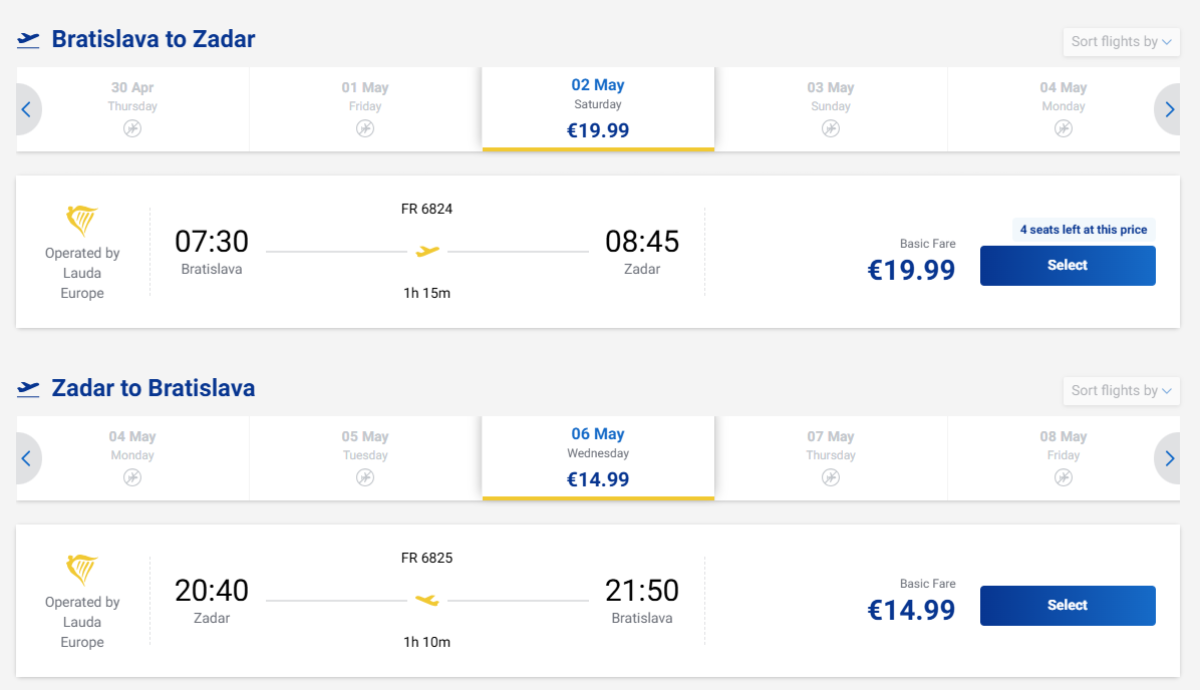 Vyberte sa na cestu z Bratislavy do Zadaru v Chorvátsku so spoločnosťou Ryanair.