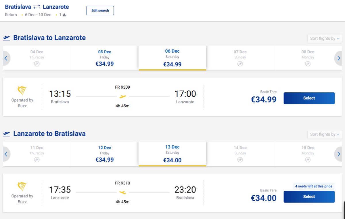 Spoločnosť Ryanair ponúka lacné spiatočné letenky na Kanárske ostrovy Lanzarote.