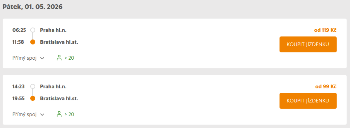 V porovnaní s Regiotom alebo Českými dráhami, ktoré jazdia rýchlejšou trasou z Prahy do Bratislavy cez Brno, bude cesta s Leo Expressom dlhšia približne o hodinu a 20 minút - celkový čas cesty je viac ako 5,5 hodiny.