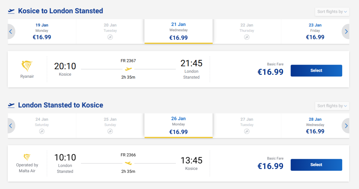 Počas januára a februára si môžete kúpiť spiatočné letenky z Košíc do Londýna so spoločnosťou Ryanair len za 34 eur. V ponuke je veľa rôznych termínov, takže si môžete ľahko vybrať dátum, ktorý vám vyhovuje.