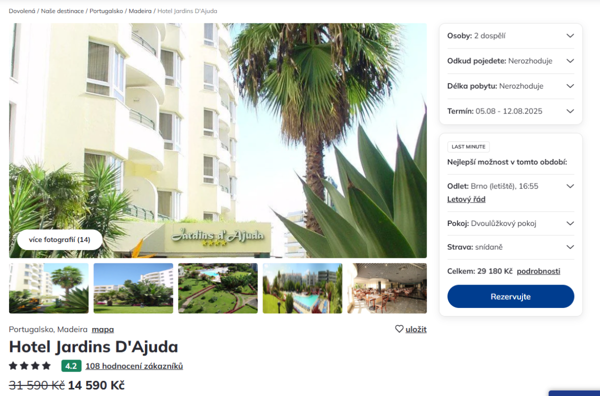 Pozrite si náš nástroj na porovnanie zájazdov na Madeiru a pozrite si ďalšie hotely a termíny s odletmi z Brna a Prahy.