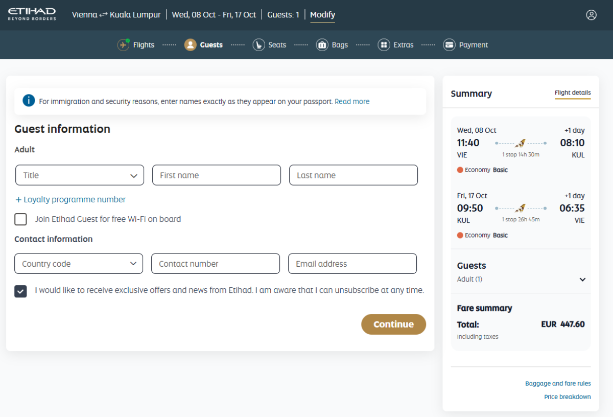 Letenky si môžete zakúpiť priamo na oficiálnej webovej stránke etihad.com.
