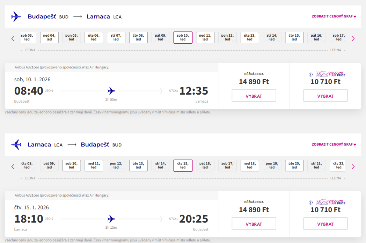 Z Budapešti môžete v zimných mesiacoch cestovať so spoločnosťou Wizz Air na slnečný Cyprus, kde sa teploty pohybujú okolo 16-20 °C a často si môžete užívať slnko.