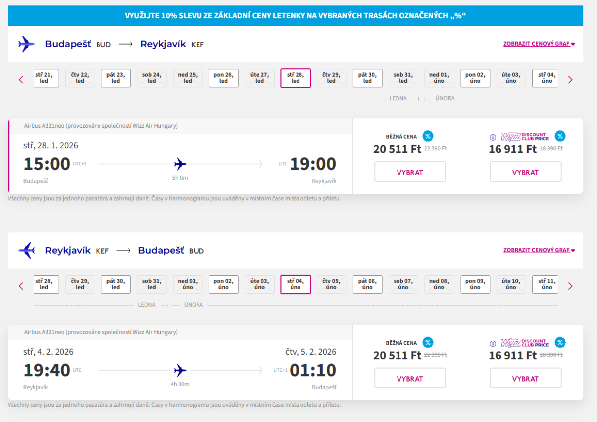 Vyberte sa na Island za polárnou žiarou a termálnymi prameňmi. Wizz Air ponúka priame lety z Budapešti do Reykjavíku v niekoľkých termínoch vo februári a marci od 41 022 huf.