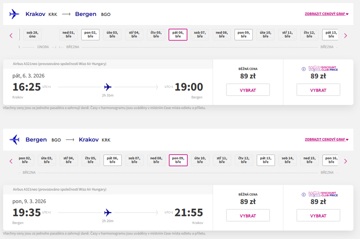 Spoločnosť Wizz Air v súčasnosti ponúka lacné spiatočné lety z Krakova do nórskych miest