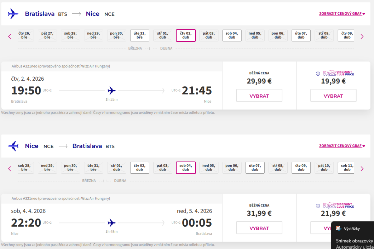 Wizz Air pokračuje v rozširovaní svojej ponuky na bratislavskom letisku a na jar pripravuje ďalšiu atraktívnu novinku. Od 31. marca 2026 spustí nové priame spojenie z Bratislavy do Nice, jedného z najvyhľadávanejších letovísk na Francúzskej riviére.