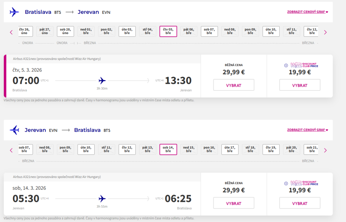 Nové linky spoločnosti Wizz Air z Bratislavy: Kutaisi a Jerevan