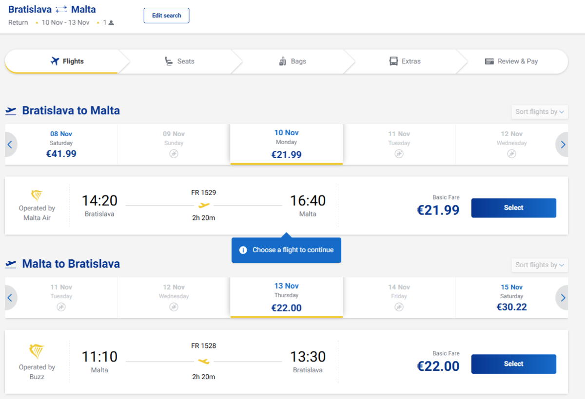 Lacné lety na Maltu ponúka spoločnosť Ryanair s odletom z Bratislavy. Spiatočné letenky na november si môžete kúpiť od 44 eur.