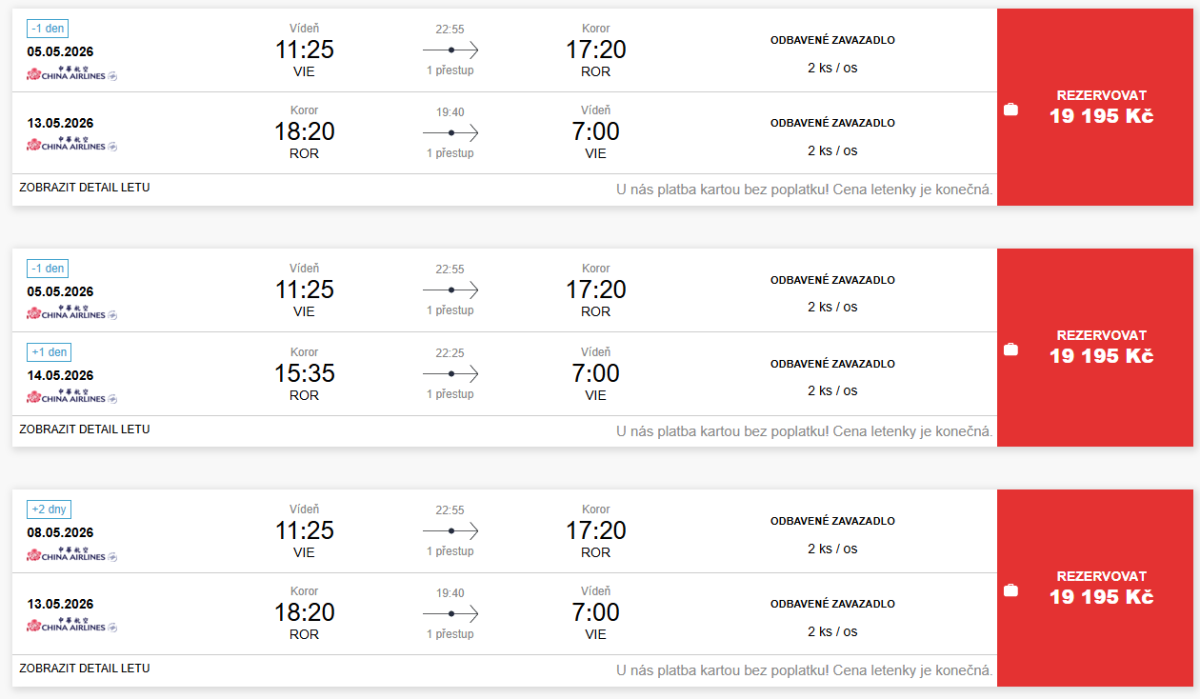 Palau z Prahy, Viedne a Frankfurtu - vrátane potápačského vybavenia (+ možnosť Premium Economy)