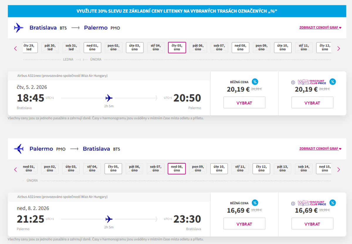 Palermo z Bratislavy: predĺžené víkendy od štvrtka do nedele