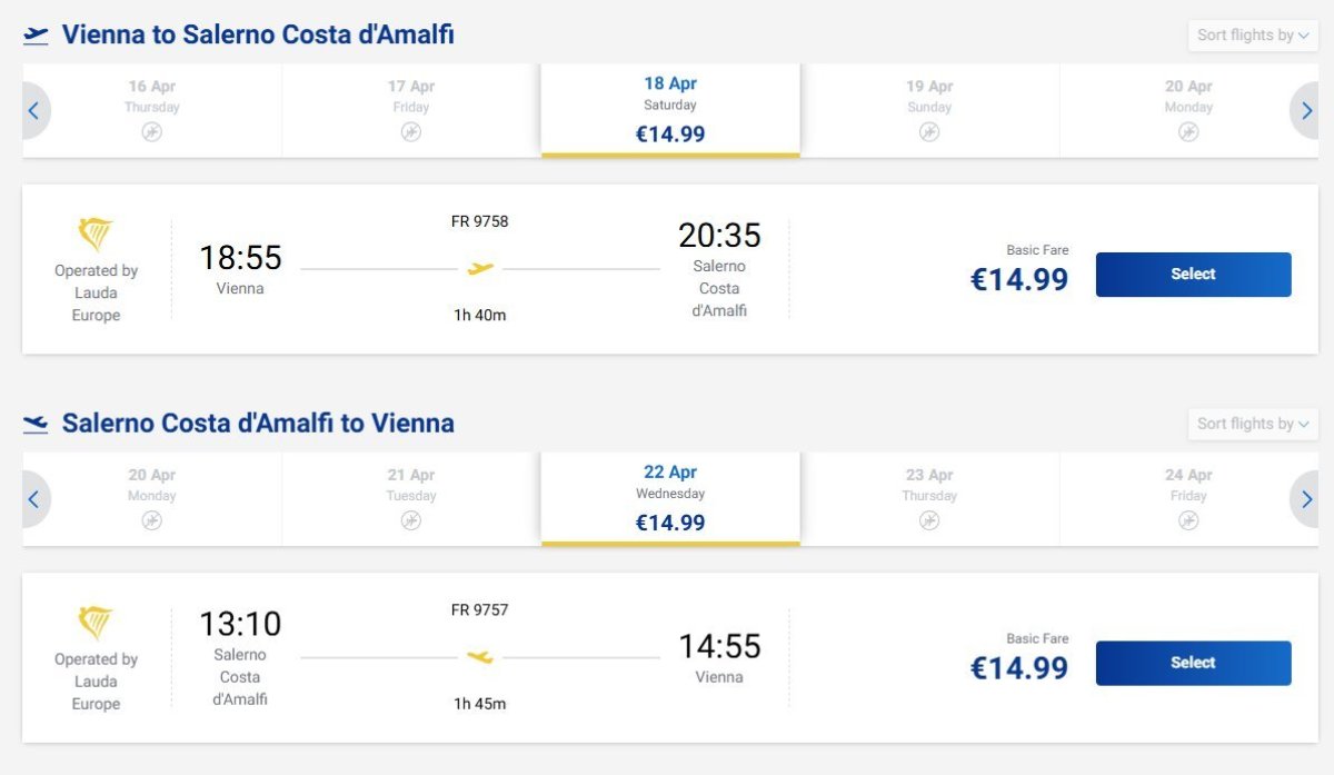 Na niekoľko aprílových last minute termínov si môžete zaobstarať spiatočné letenky na letisko Salerno so spoločnosťou Ryanair. Letisko je skvelou základňou na cestovanie po pobreží Amalfi.