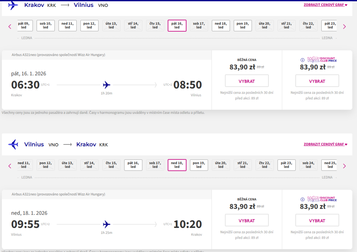 Vilnius má najlacnejšie termíny od januára do februára, napríklad od piatka do nedele.