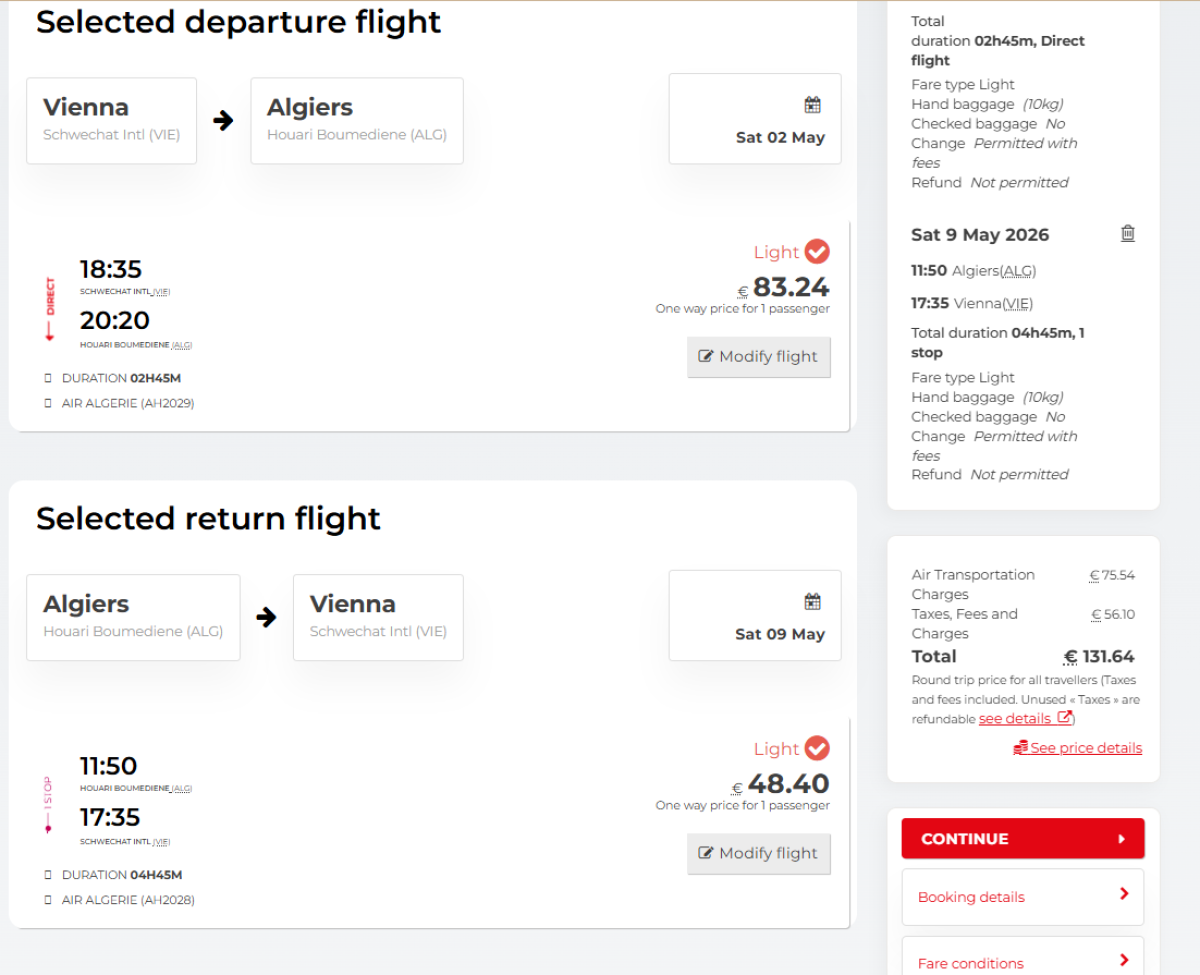 Alžírska národná letecká spoločnosť Air Algérie v súčasnosti ponúka propagačné priame lety z Viedne do Alžíru. Spiatočné letenky si môžete v období od konca marca do júna kúpiť už za 132 eur.