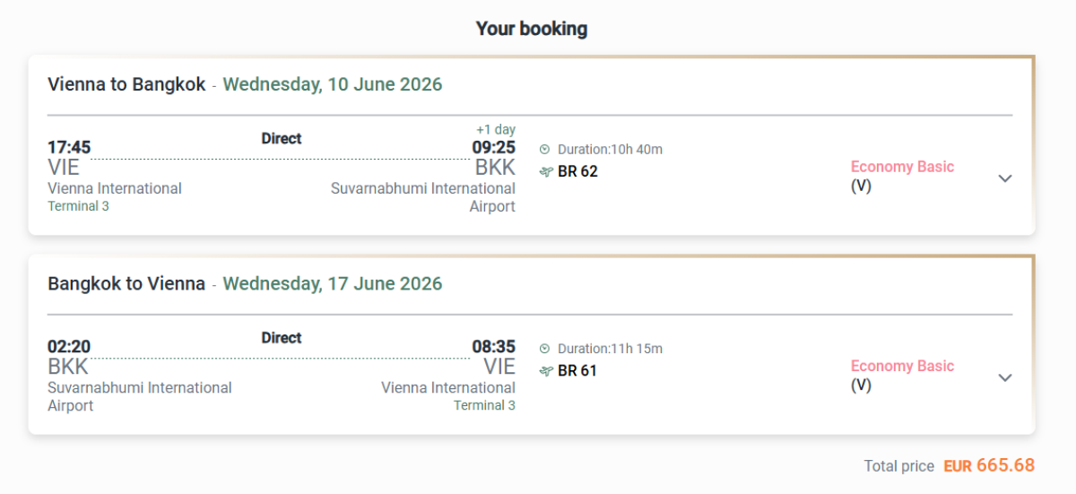 Priame lety z Bangkoku so spoločnosťou EVA Air z Viedne od marca do júla