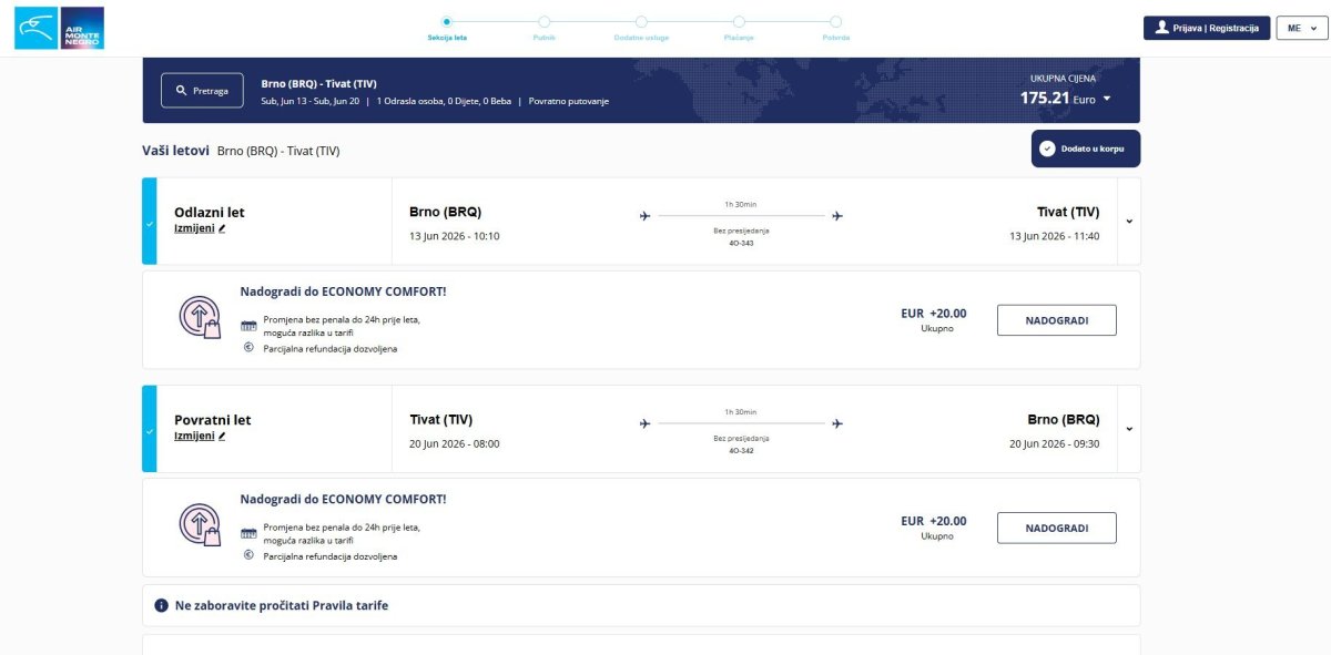 Za podobné ceny sú dostupné aj lety do Podgorice, a to z Brna aj z Prahy, ale len na niekoľko termínov.