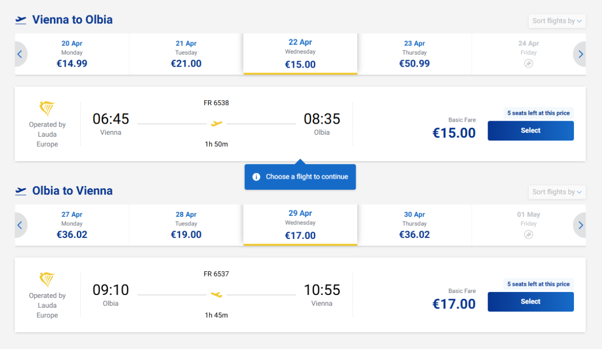 Ryanair ponúka lacné lety z Viedne na Sardíniu, ostrov známy svojimi krásnymi plážami, ako je Costa Smeralda, a priezračným azúrovým morom. Spiatočné lety do Olbie sú v apríli dostupné už od 32 EUR.