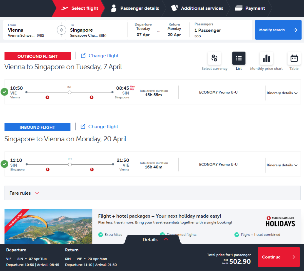 Turkish Airlines ponúka zaujímavé ceny spiatočných letov z Viedne do Singapuru. Vo vybraných termínoch v apríli a máji je možné kúpiť letenky už za 492 eur.