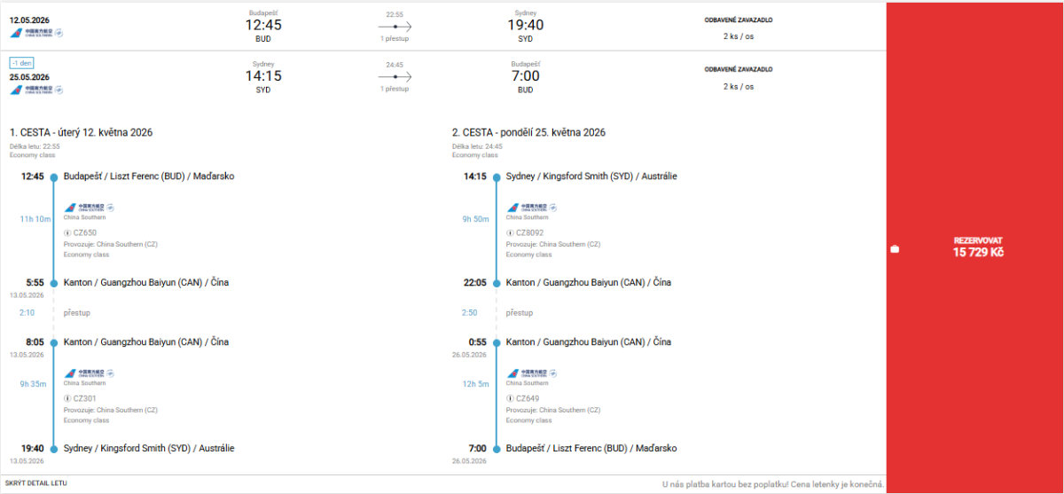 Na rozdiel od prevažnej väčšiny ponúk čínskych leteckých spoločností v smere z Európy do Austrálie sú lety s relatívne krátkym medzipristátím (do 3 hodín v prípade Sydney, do 7 hodín v prípade ostatných miest, ale bez nepríjemného nočného čakania).