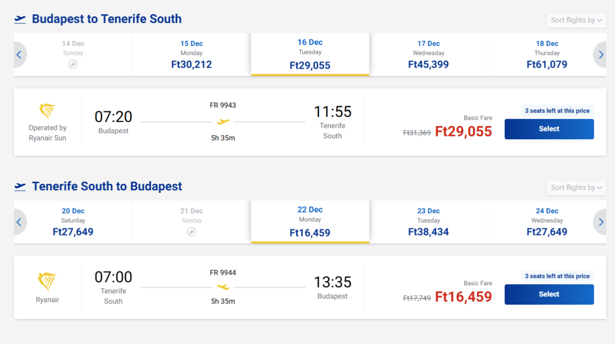 Tenerife z Budapešti v decembri