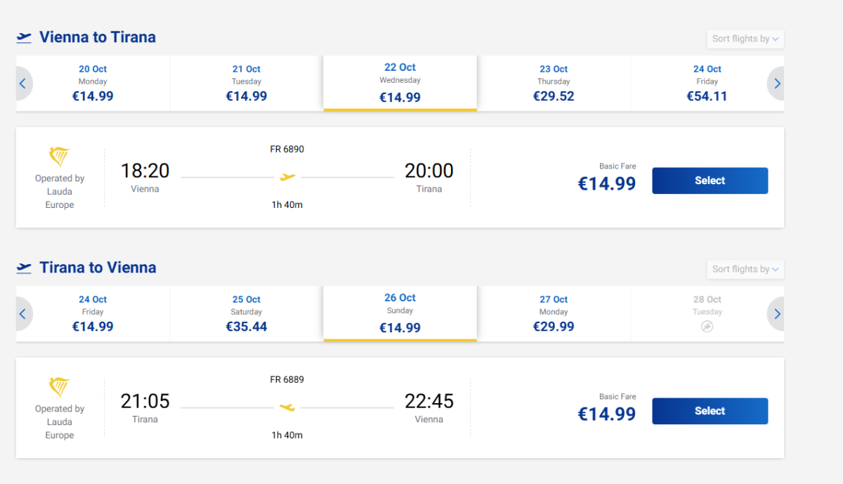 Ryanair ponúka lacné spiatočné letenky z Viedne do Tirany, Albánsko. Letenky za 30 eur v októbri.