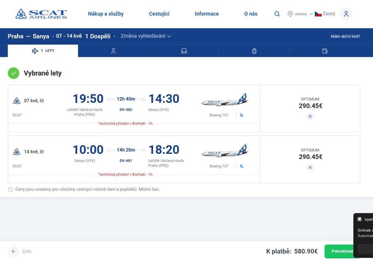 Budete lietať s týmito leteckými spoločnosťami: SCAT Airlines