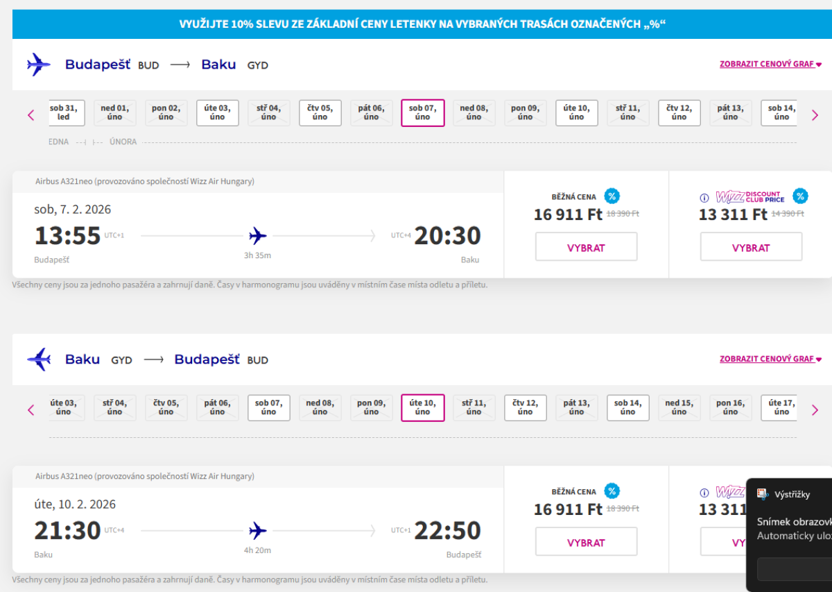 Z Budapešti do Baku počas zimy so spoločnosťou Wizz Air