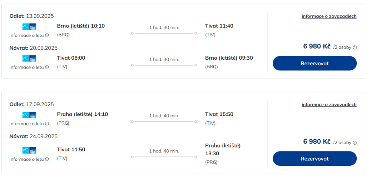 Z Prahy alebo Brna do Tivatu so zapísanou batožinou
