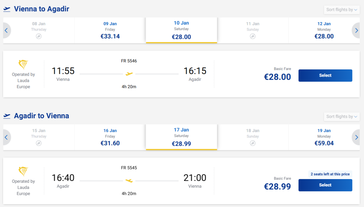 Ryanair ponúka spiatočné letenky z Viedne do Agadiru v Maroku od 56 eur. Najlepšie ceny sú k dispozícii v januári: