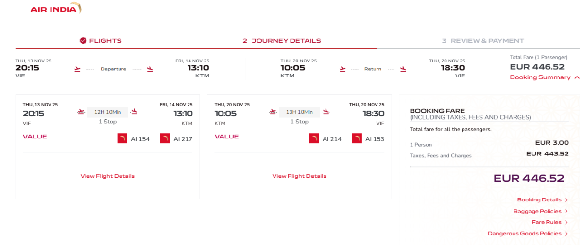 Spoločnosť Air India ponúka spiatočné letenky z Viedne do Káthmandu s krátkym prestupom v Dillí od 447 eur.