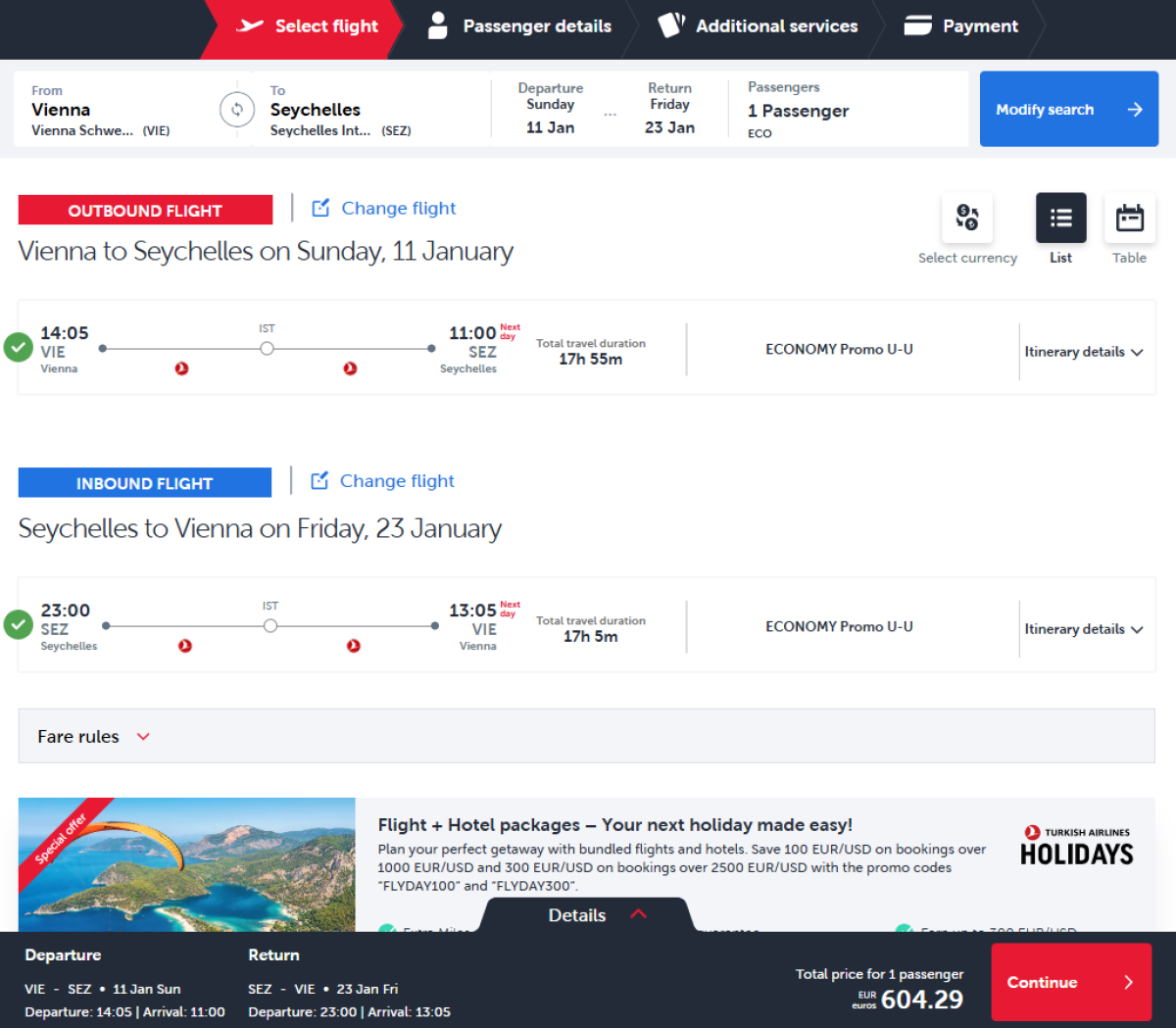 Z Viedne na Seychely so spoločnosťou Turkish Airlines