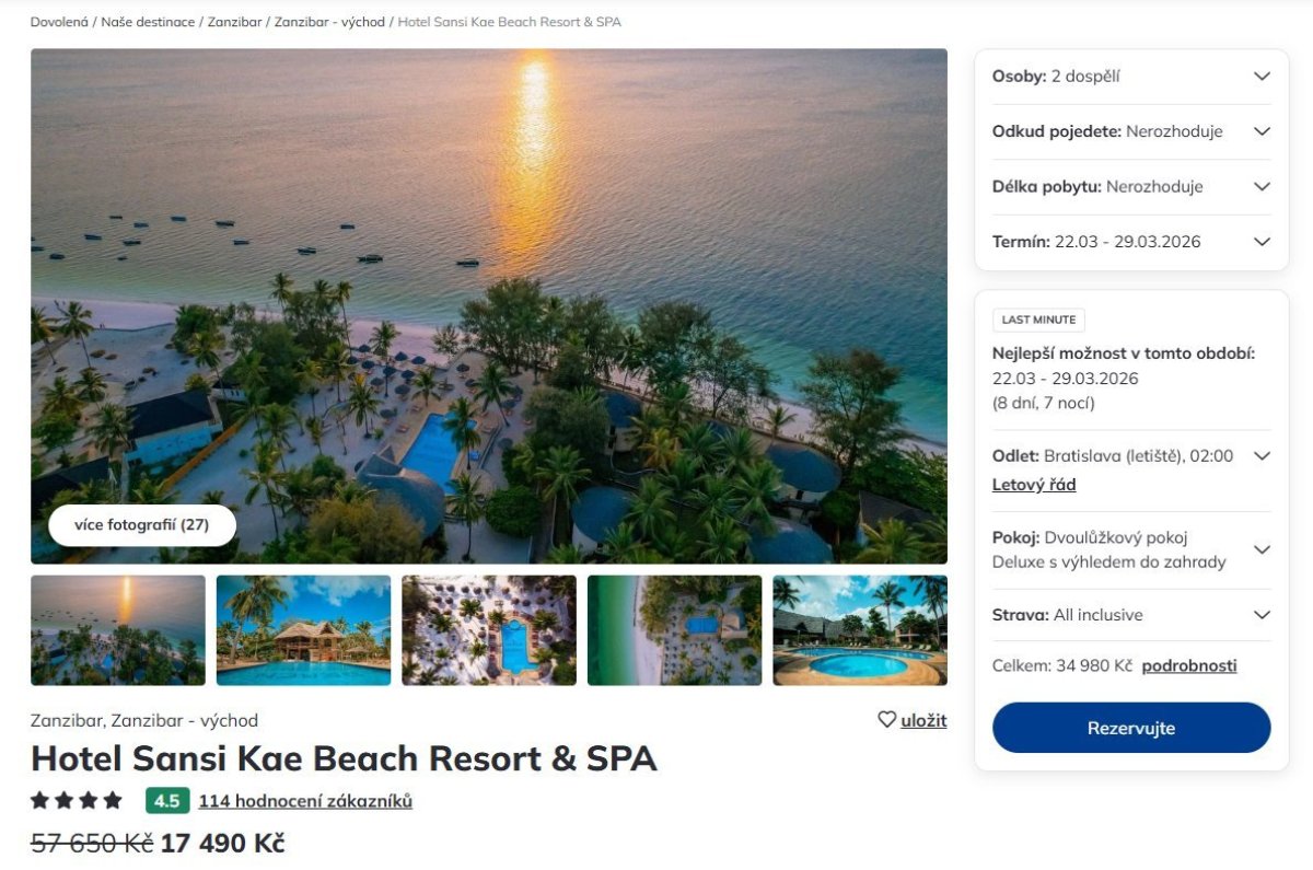 Cestovná kancelária Čedok ponúka super lacné last minute zájazdy na Zanzibar z Bratislavy, kde sa ceny aktuálne pohybujú pod hranicou 818 eur. Na exotickú dovolenku s all inclusive je to naozaj veľmi lákavá ponuka.