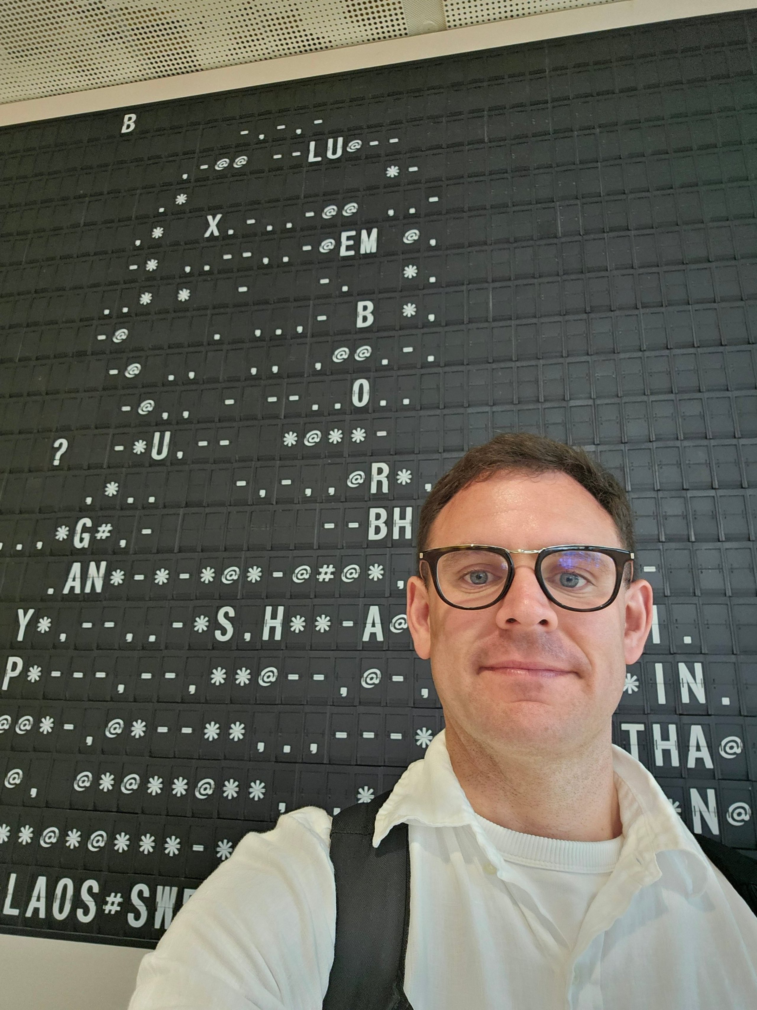 Postavíte sa pred starú odletovú tabuľu a tá pomocou klapiek vytvorí váš obrys.