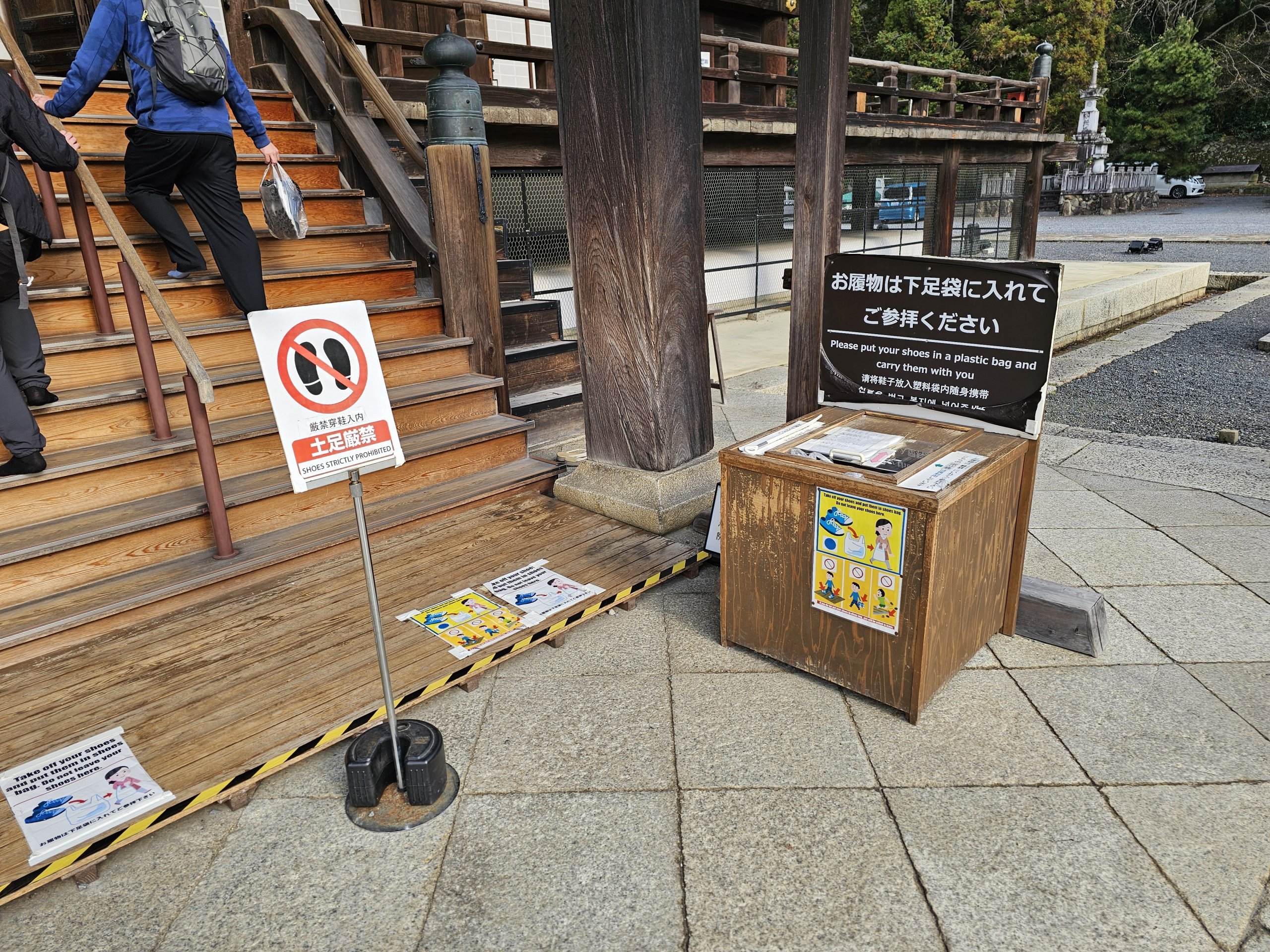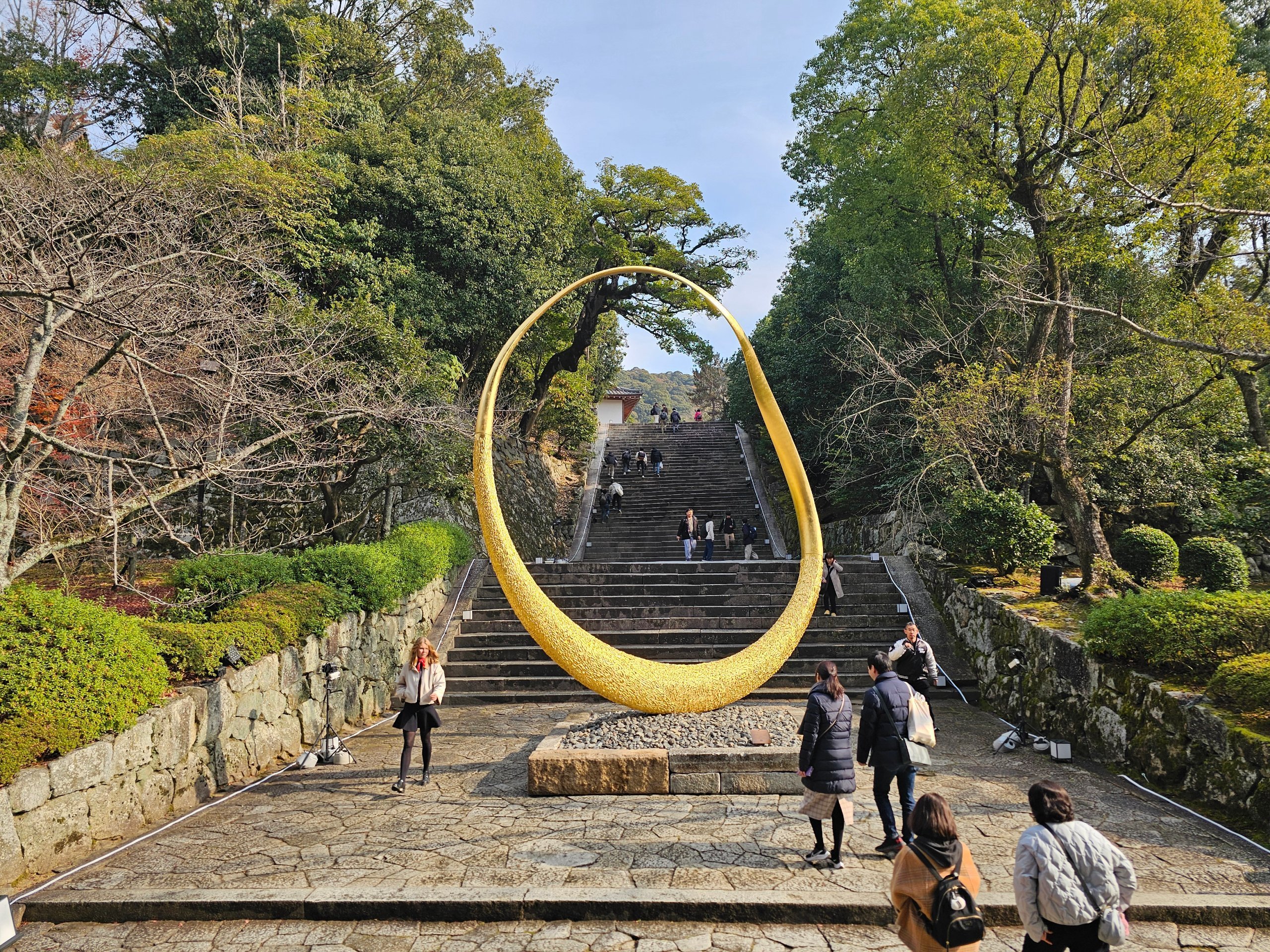 Obrovská brána Sanmon je jednou z najväčších drevených chrámových brán v Japonsku. Samotné schodisko pred hlavným komplexom je často fotografovaným miestom - najmä na jeseň, keď sa sfarbí lístie.