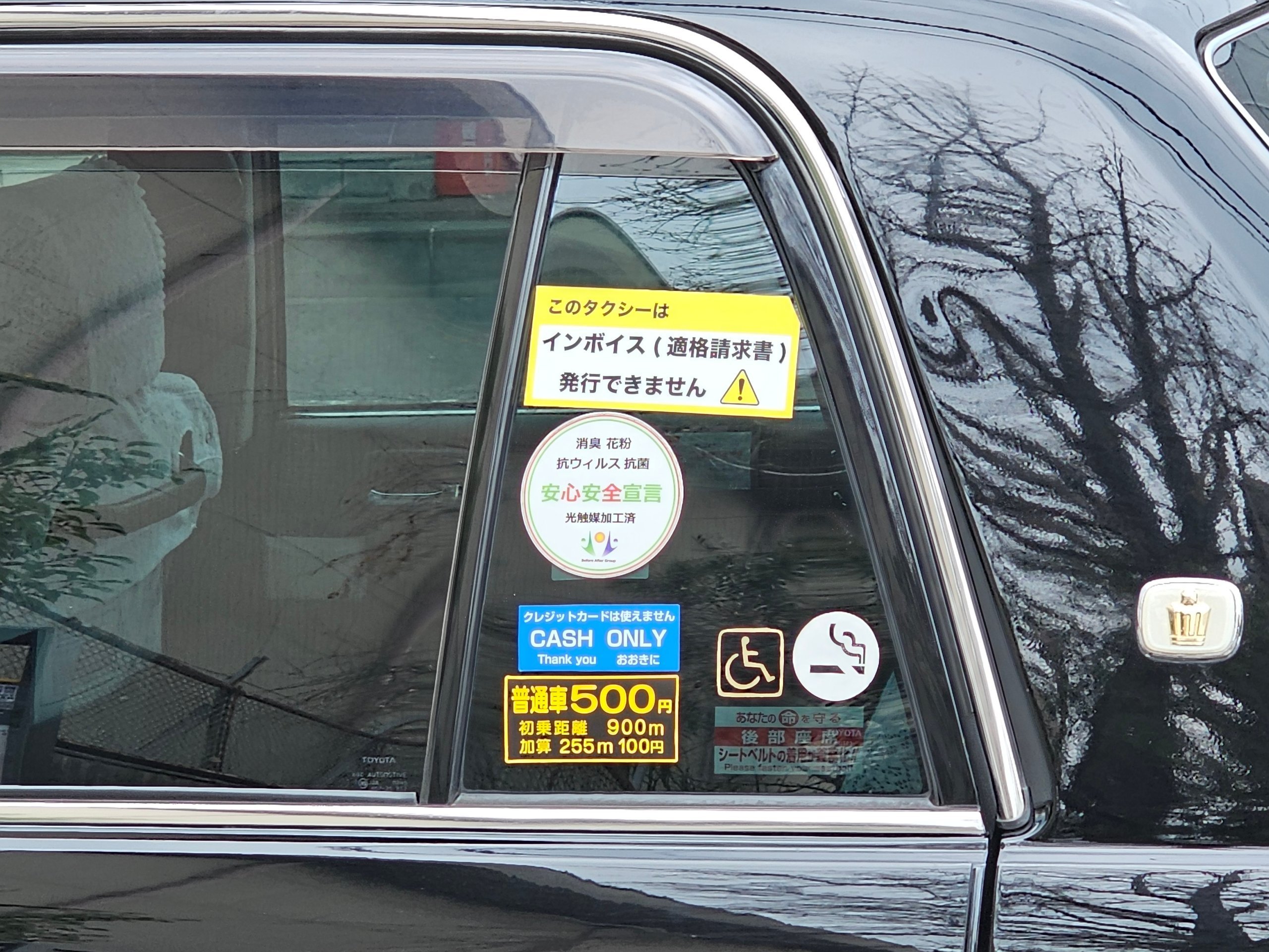- 80 jpy - každých ďalších 296 metrov alebo 1 minúta čakania (väčšie taxíky majú o niečo vyššiu cenu)