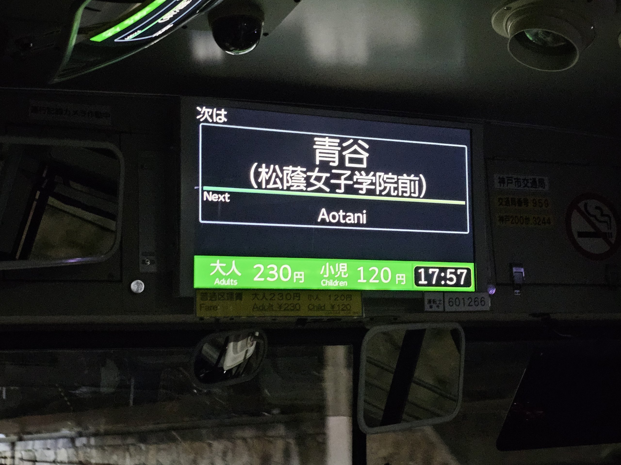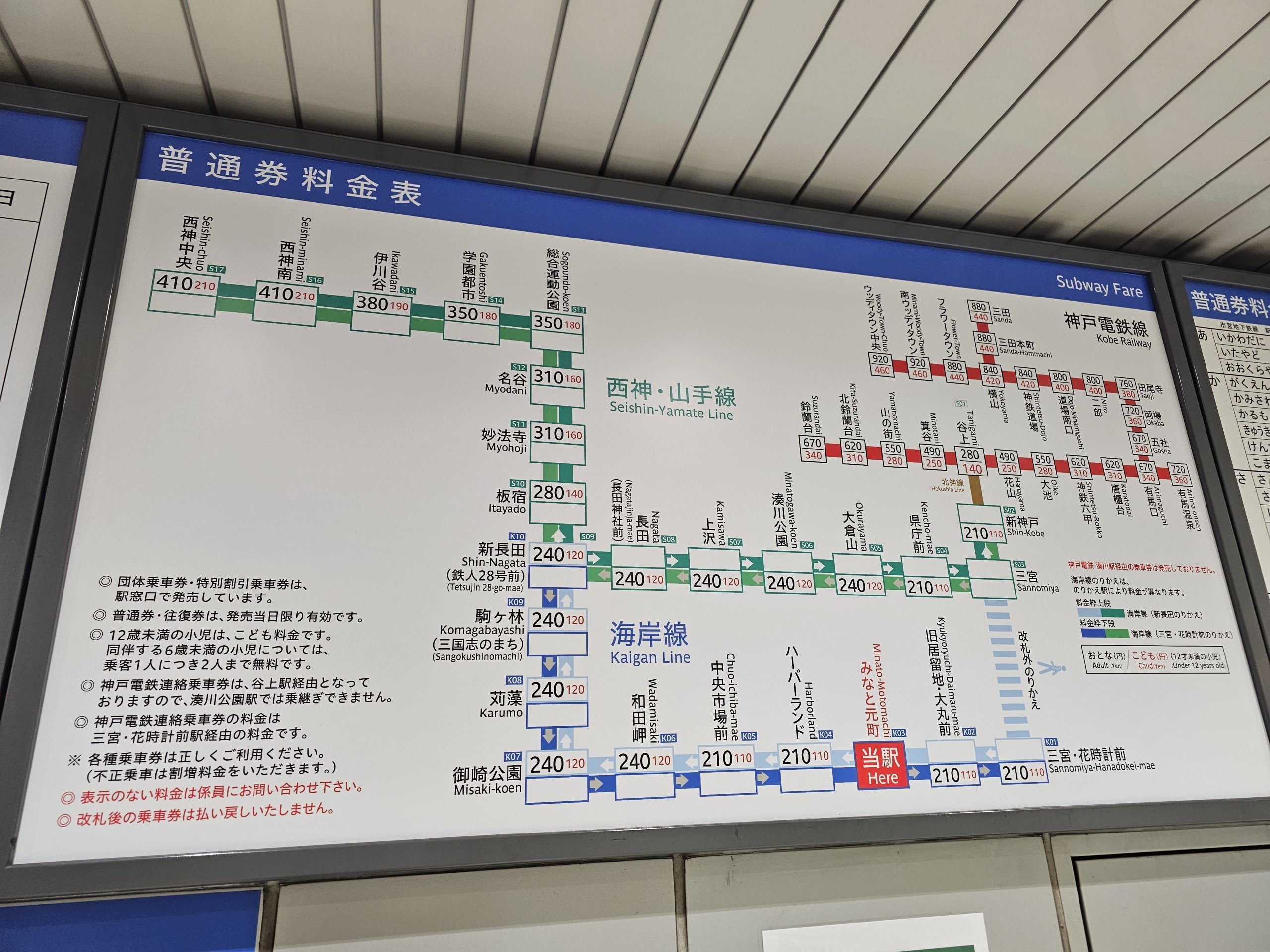 Výnimkou je malé centrum mesta v okolí stanice Sannomiya, kde sa platí len za 1 cestu 120 jpy.