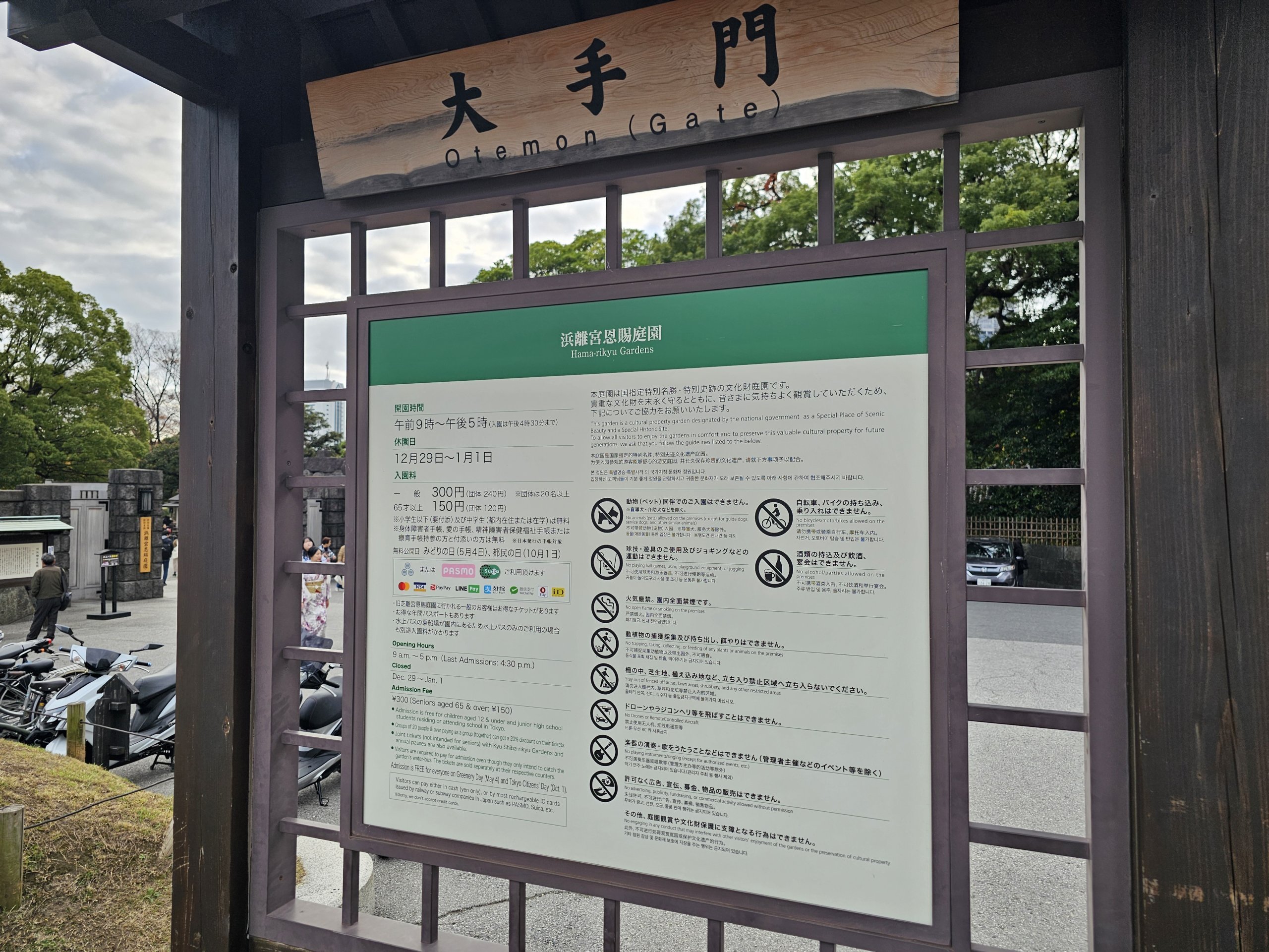 Do záhrad Hama-rikyu sa platí vstupné vo výške 300 jpy.