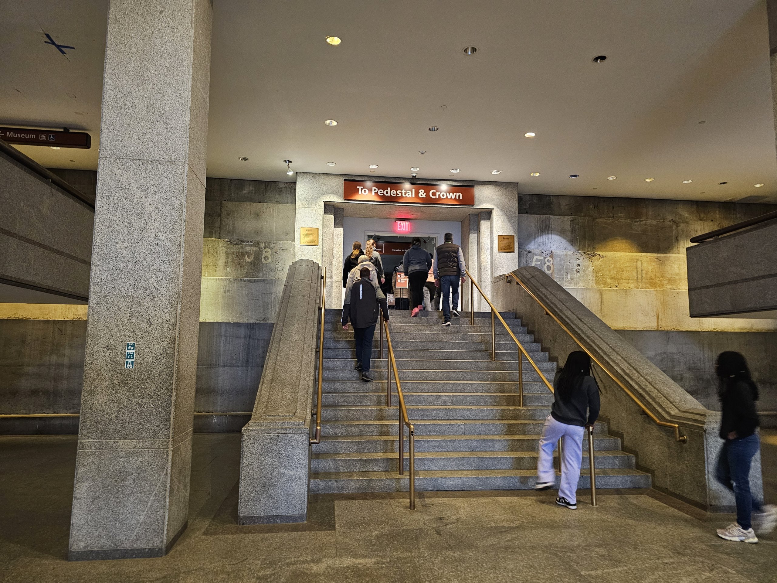 Na vyhliadku na žulovom podstavci a korunu môžete vstúpiť len bez batožiny. Tie si môžete uložiť do skriniek pred vchodom, ktoré sú funkčné po vložení štvrťdolárovky (0,25 usd). Platiť môžete len v hotovosti, ale na mieste je zmenáreň, ktorá vám hotovosť vymení.