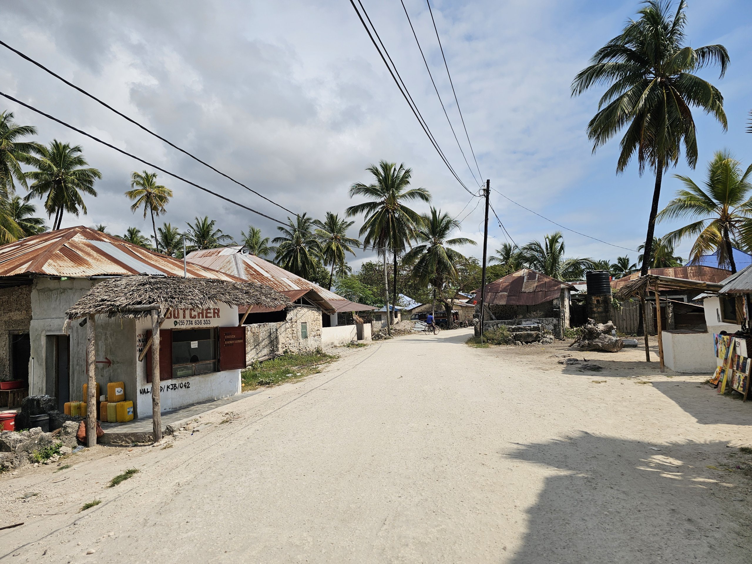 Okrem pásu hotelov priamo na pláži je Jambiani veľmi chudobná a miestna dedinka, cez ktorú vedie poľná cesta.