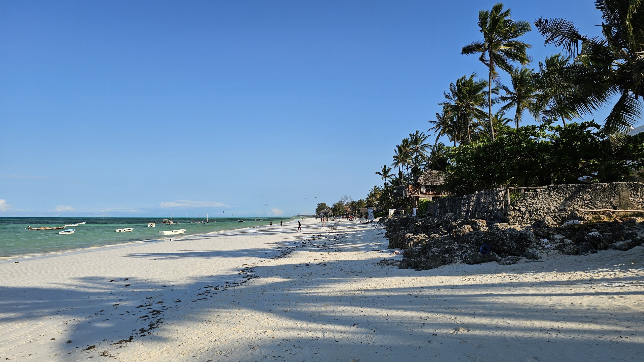 V skutočnosti je však pláž Jambiani oveľa dlhšia ako 5 km, pretože plynule nadväzuje aj na všetky susedné pláže a súvislý pás piesku sa tiahne až k letoviskám Paje alebo Bwejuu.