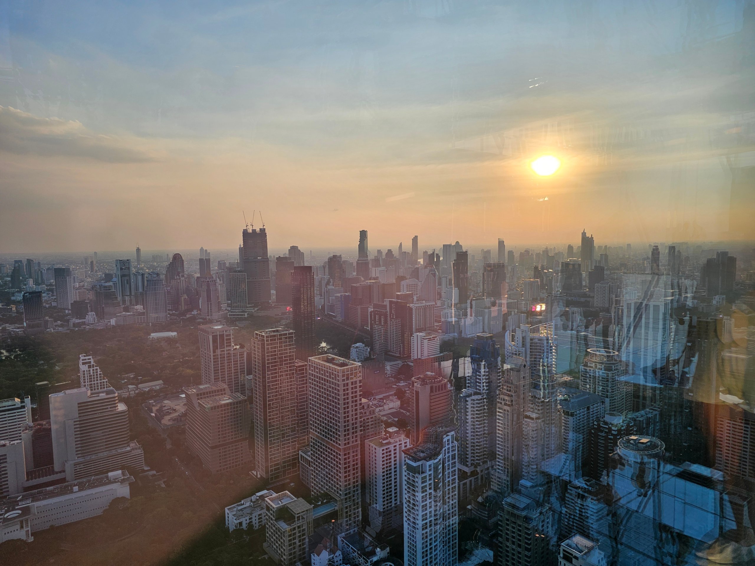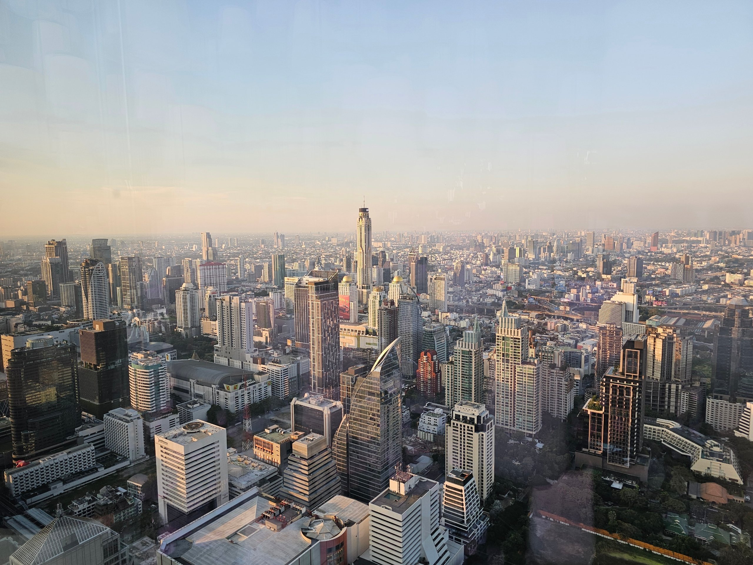 Rieka Chao Praya alebo historické centrum sú odtiaľto pomerne ďaleko a lepší výhľad na ne je z vyhliadky Mahanakhon.