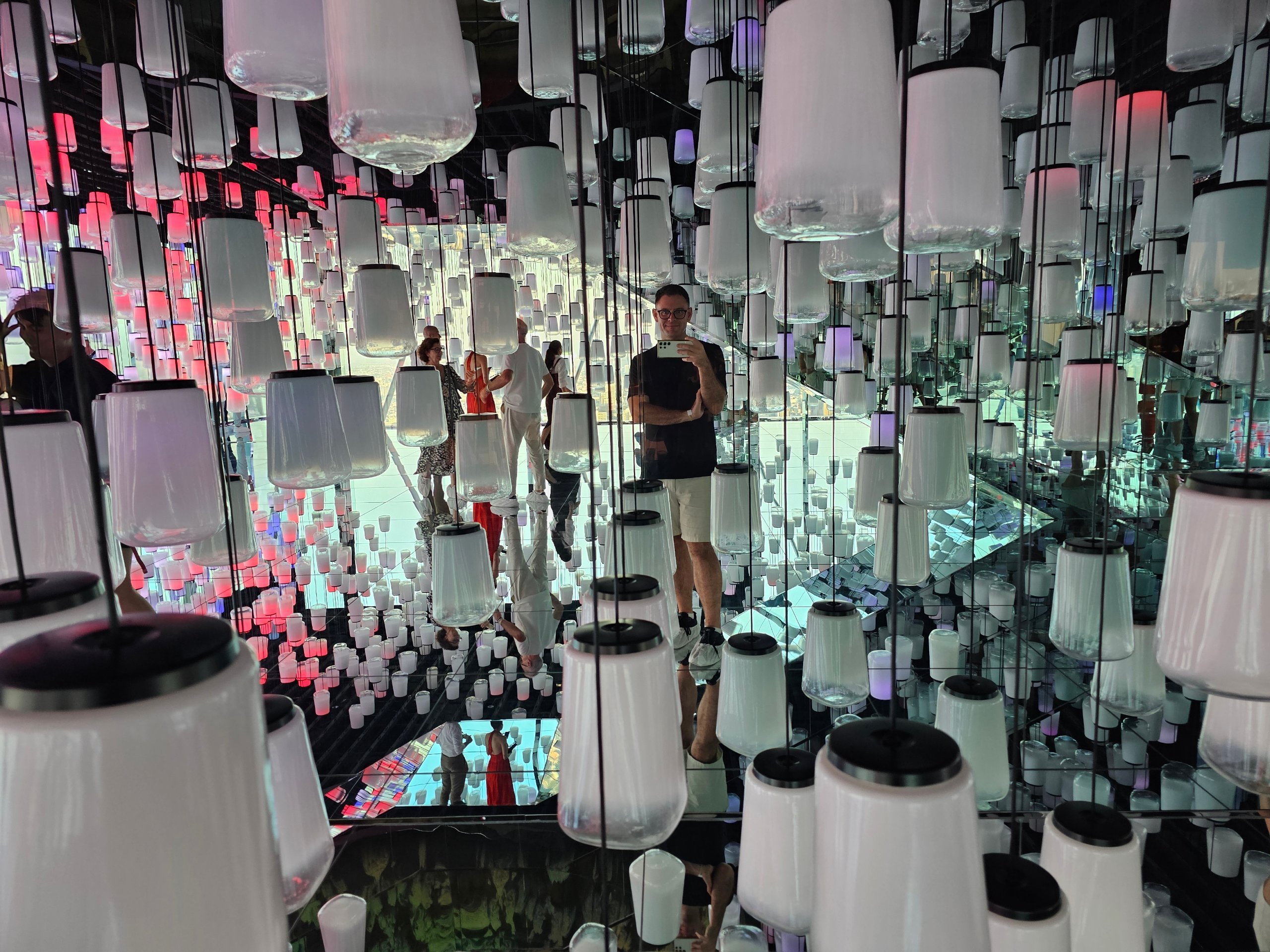 Inštalácia inšpirovaná tradíciou lampiónov, kde svetelné efekty vytvárajú pocit nekonečného priestoru.